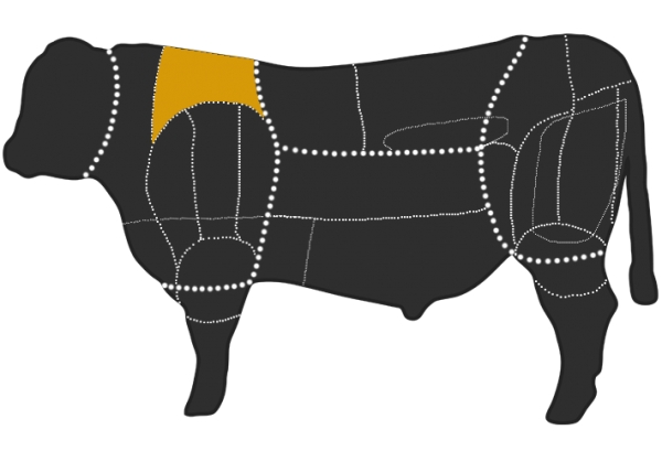 Dieses Fleisch gelingt besonders gut bei etwas längeren Garzeiten. Es ist kräftig im Geschmack, saftig und marmoriert. Die Stücke sind kleiner geschnitten als beim Schmorfleisch. Wir verwenden dafür folgende Fleischteile: